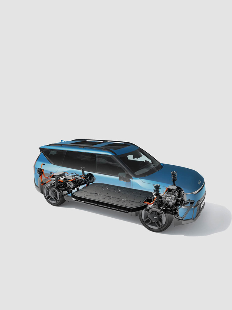 Mit einem elektronisch geregelten Allradantrieb ist dein EV9 besonders effizient und leistungsstark. Zusätzlich bietet er dir einen optimalen Grip.